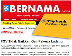 TIADA KENAIKAN GAJI PEKERJA LADANG FGV SEPERTI LAPORAN MAYBANK IB